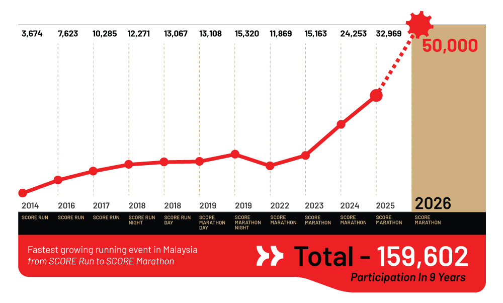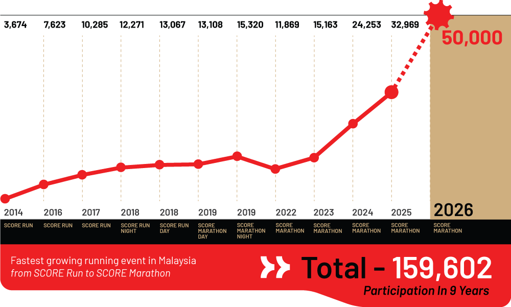 What started as a small community run in 2014 has grown into one of Malaysia’s most recognised marathons. Each year, our runners, supporters, and volunteers have contributed to a journey measured not just in numbers, but in strength, perseverance, and community spirit: